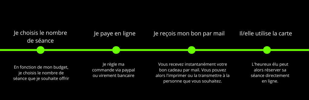 Bon cadeau à partir de 30€, possibilité d’offrir un pack de 2 à 20 séances.